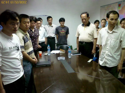 ??????? 2008年5月19日,全國哀悼日。 適李克民老師在百忙中再次蒞臨柏特瑞公司考察。下午2點28分李克民老師和柏特瑞公司部分員工一起為四川汶川大地震遇難者默哀三分鐘!默哀結束李老師深情勉勵柏特瑞全體員工“把一個民族對生命尊重,歷經艱難而不折的意志轉化為很好的學習和工作、很好的感恩社會,繼續努力為中國通信電源事業發展做貢獻...。”